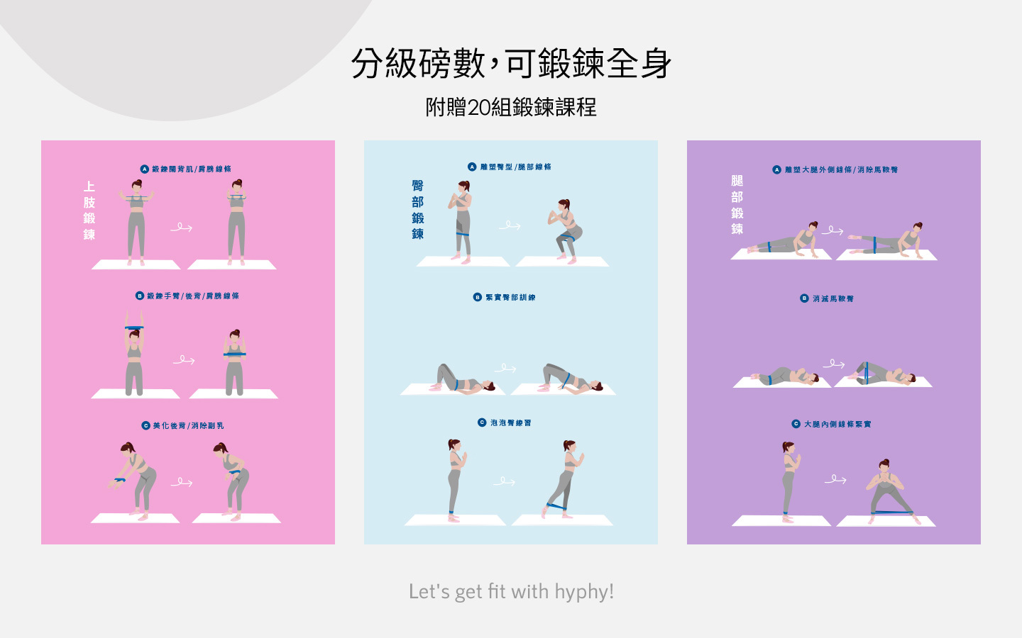 四種分級阻力,刺激上肢、臀腿肌肉,強化鍛鍊、局部塑形。