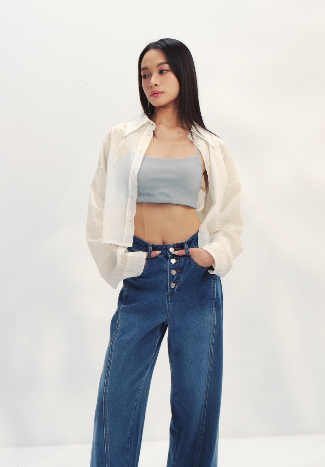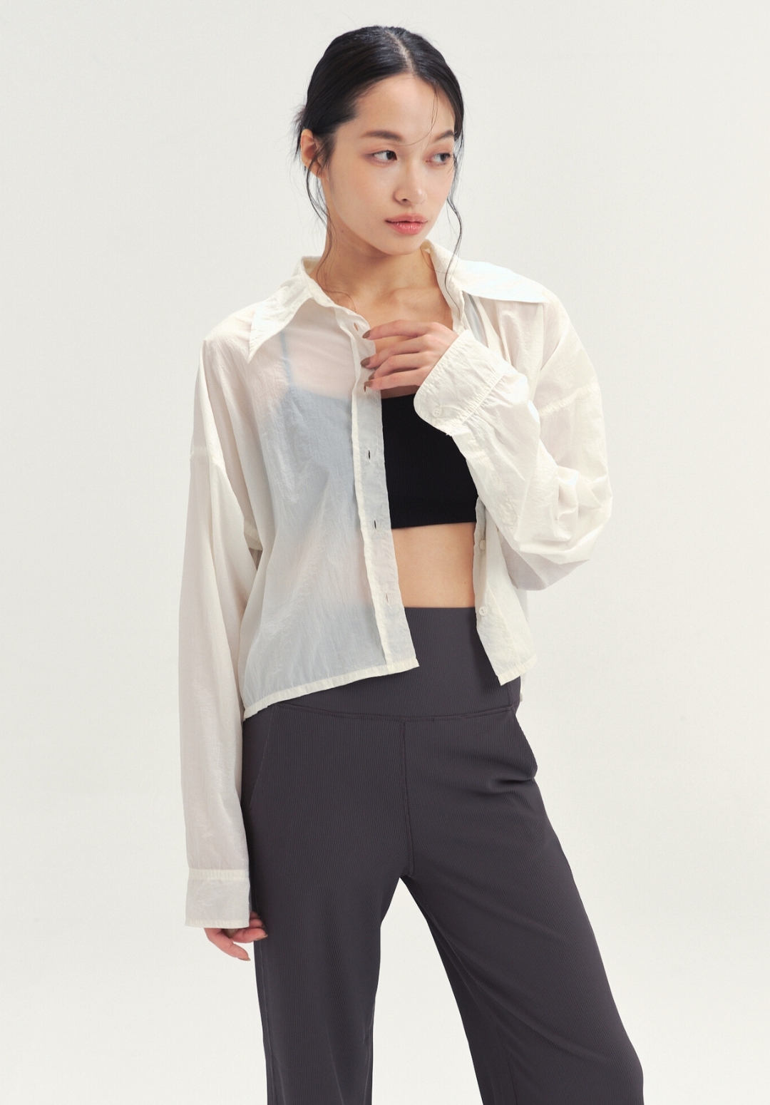 2. 完美剪裁短版襯衫設計,搭配不同單輕鬆出入不同場合