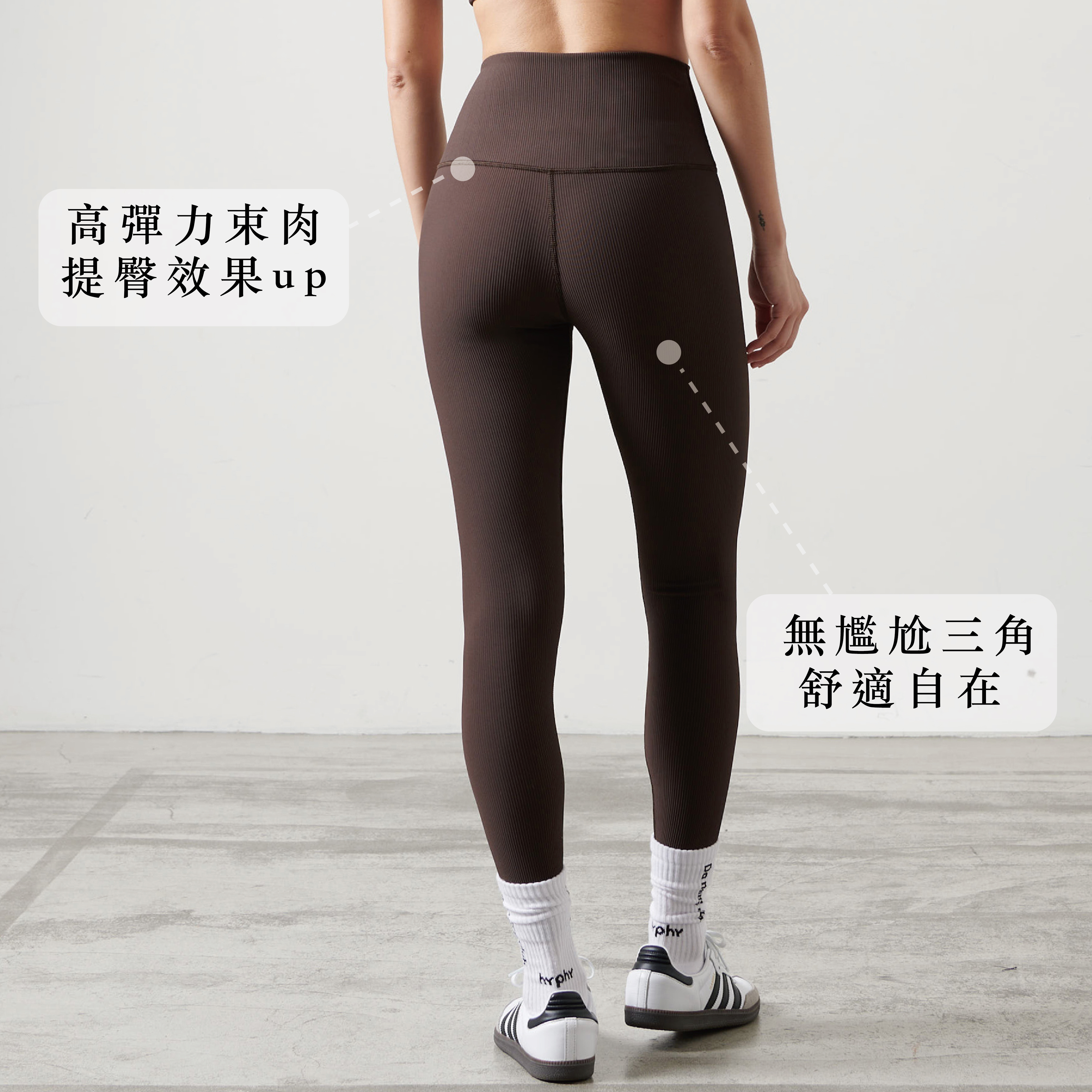 完美臀線剪裁及360度高彈力緊緻面料,可微拉下垂脂肪達到手托式提臀效果,自然勾勒圓翹臀形。