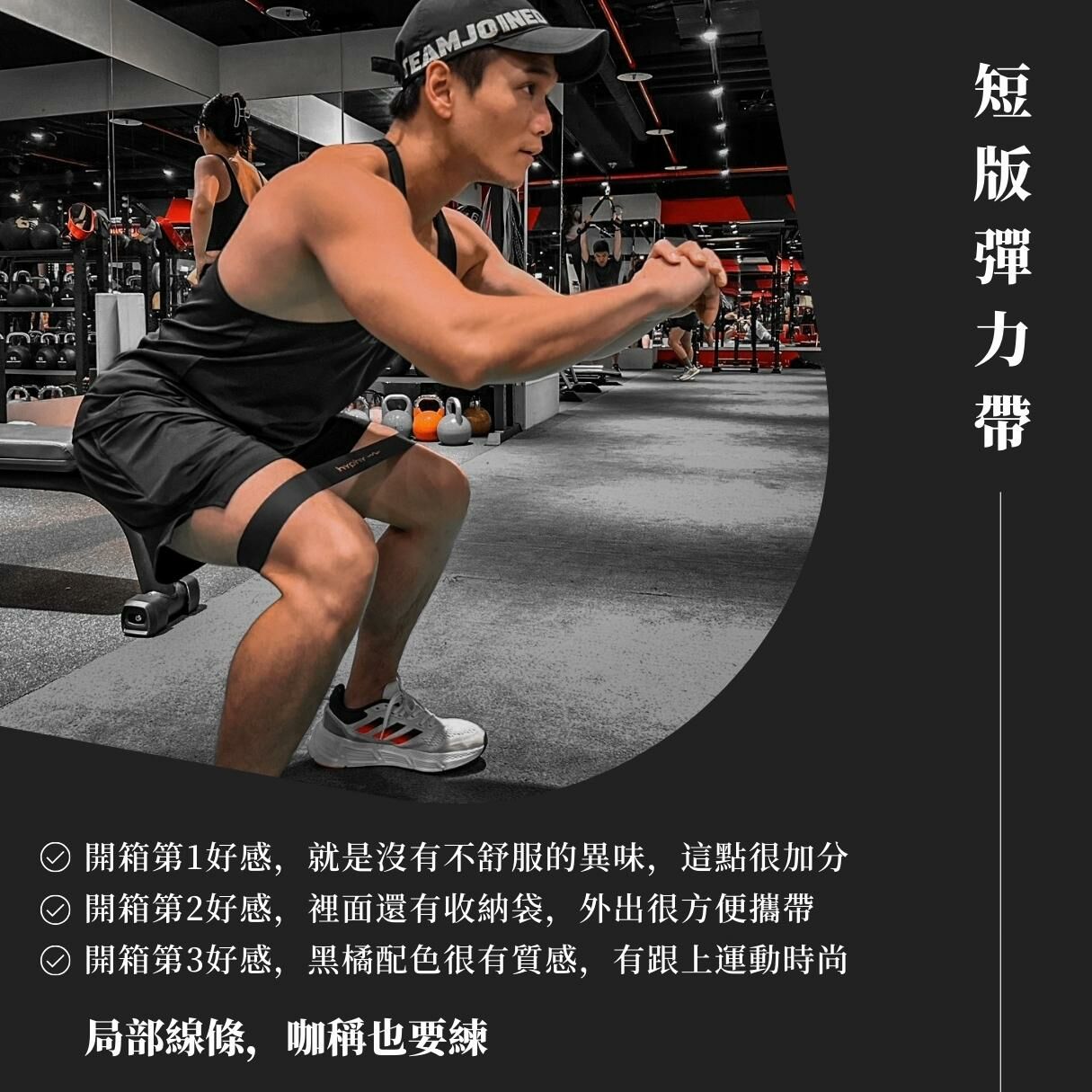 在運動過程中,搭配短版彈力帶,可藉由增加身體的負荷程度,加強刺激肌肉,達到強化鍛鍊、局部塑形減脂的目的。