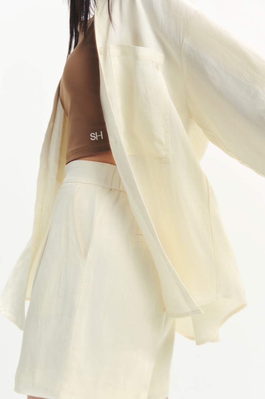 天絲&麻混紡面料,具備透氣・親膚・挺度